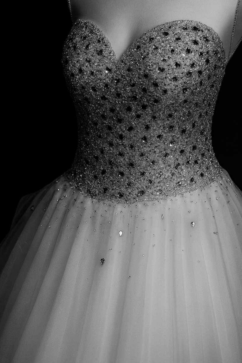 Das Design-Stück „1001 Nacht“ wurde in liebevoller Handarbeit gefertigt – mit höchster Sorgfalt und einem Blick fürs Detail. Jedes Glitzerelement, jede Perle und jeder Stein wurde einzeln per Hand auf das Oberteil aufgenäht, um ein unvergleichliches Funkeln zu erzeugen.